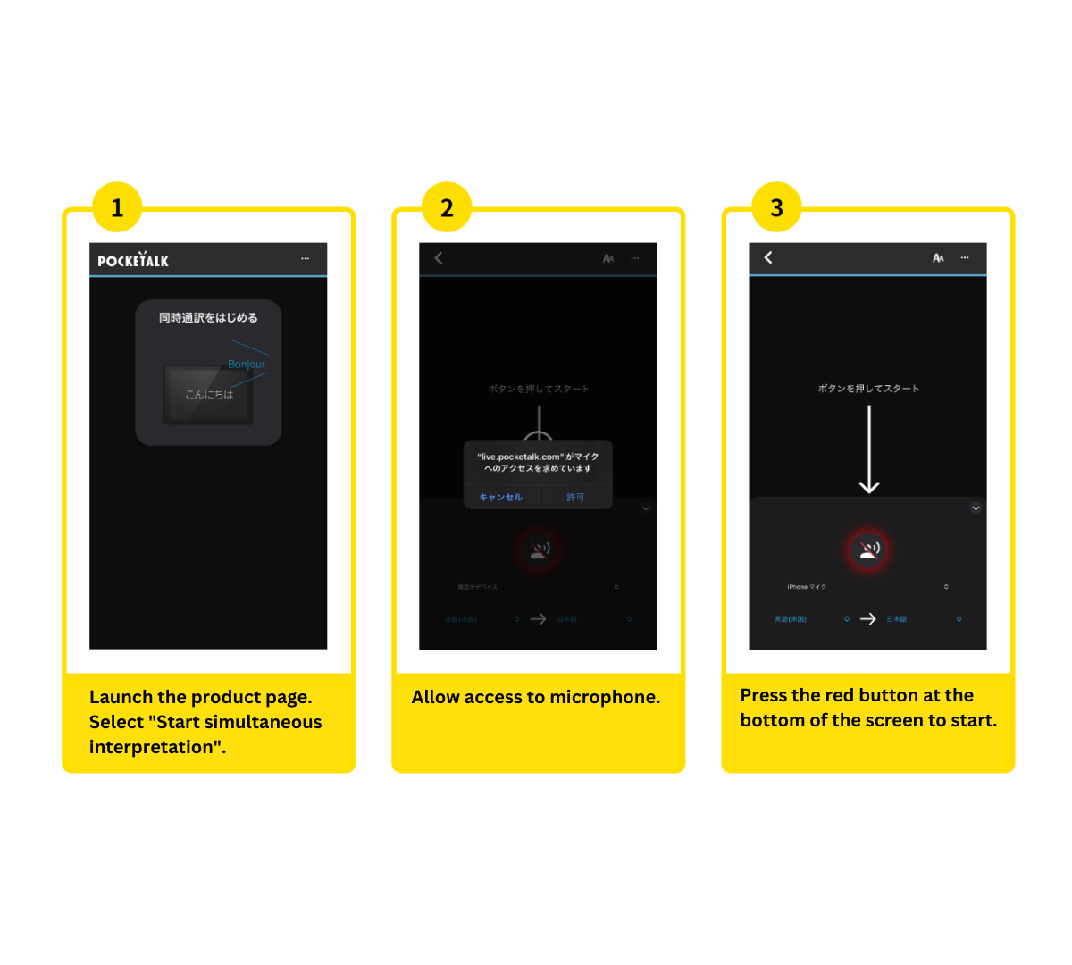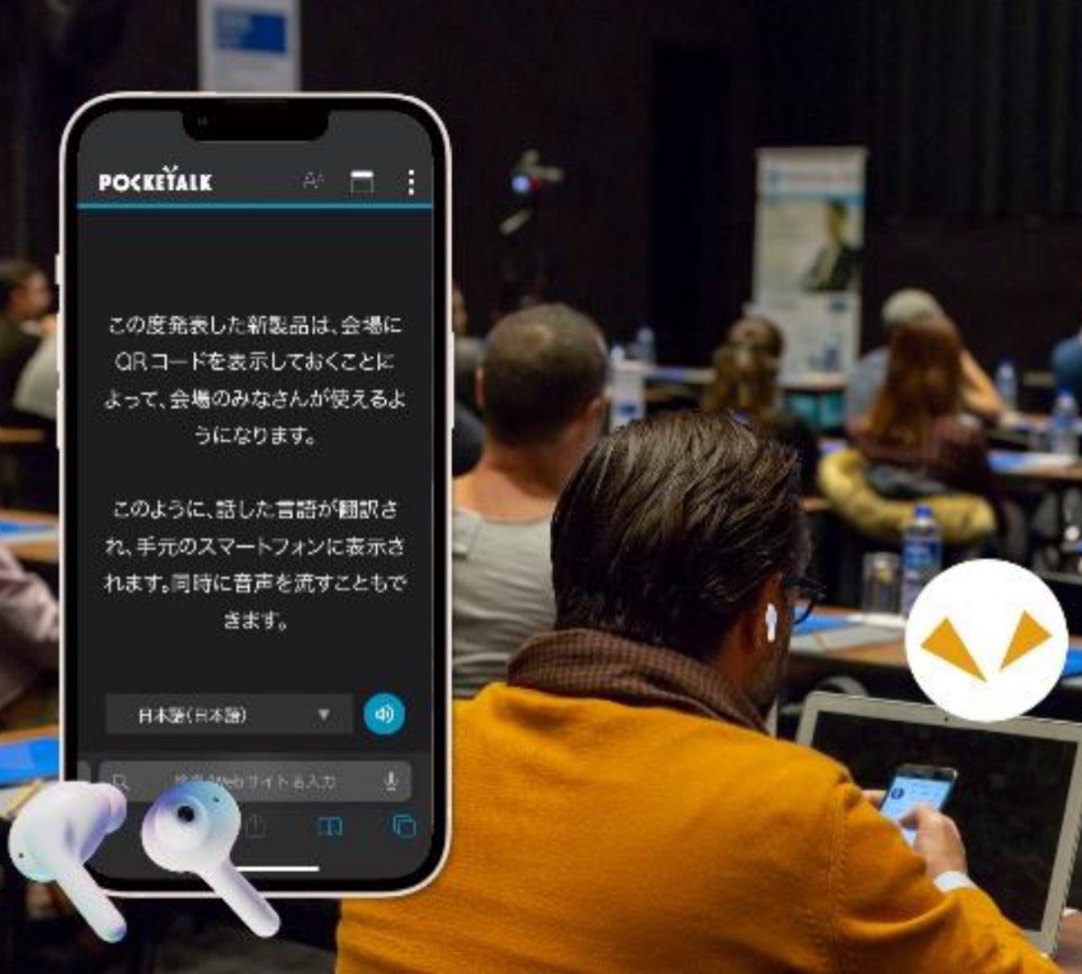 同時通訳ソリューションです。<br>いつでもどこでも利用可能で、研究会議、セミナー、ワークショップ、オンライン会議などに最適です。