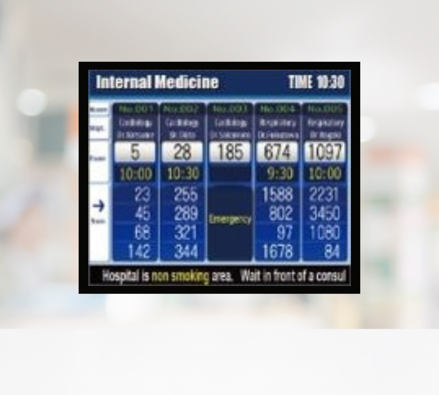大きく読みやすい番号表示で、患者さまのストレス軽減、プライバシーの保護、職員さまの業務効率アップ、混雑の緩和をお手伝いします。