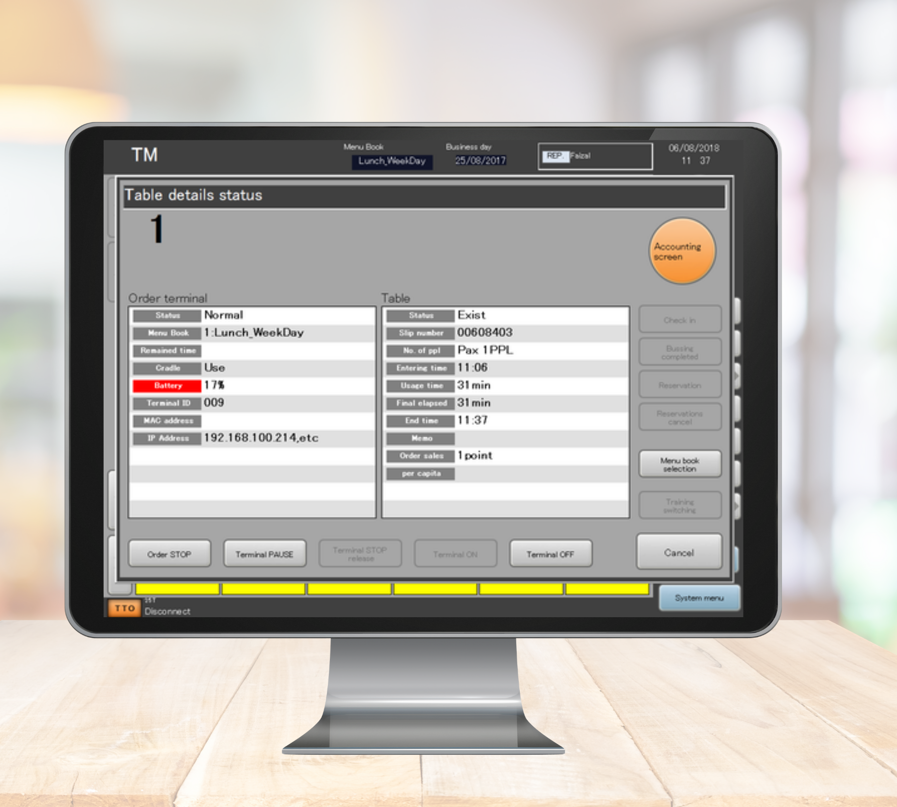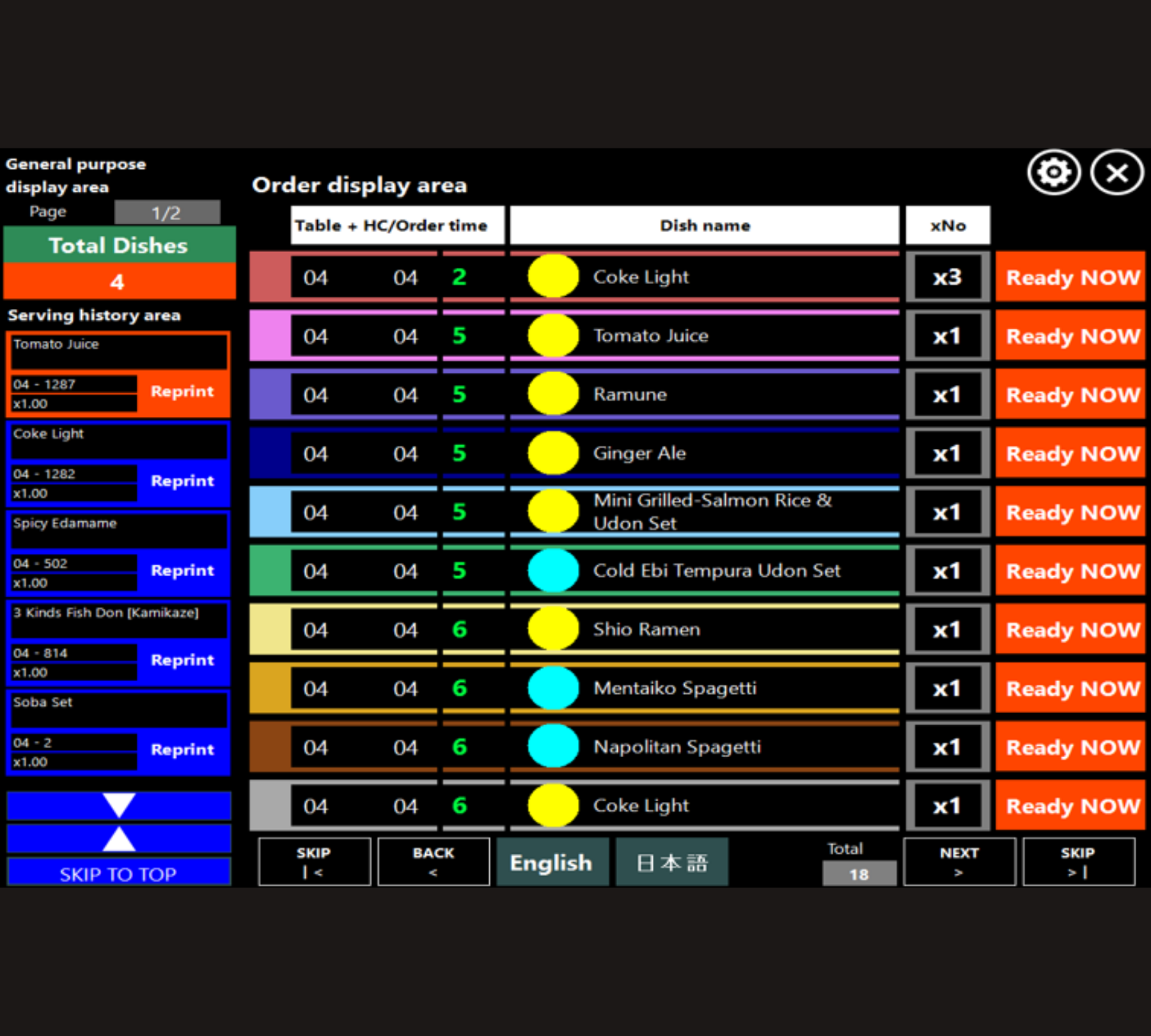 - 伝票のみ発券する運用と、ディスプレイにて表示する運用をお選び頂けます。どちらも指定の設置箇所に指定のオーダーのみ連携するようにアレンジすることも可能です。