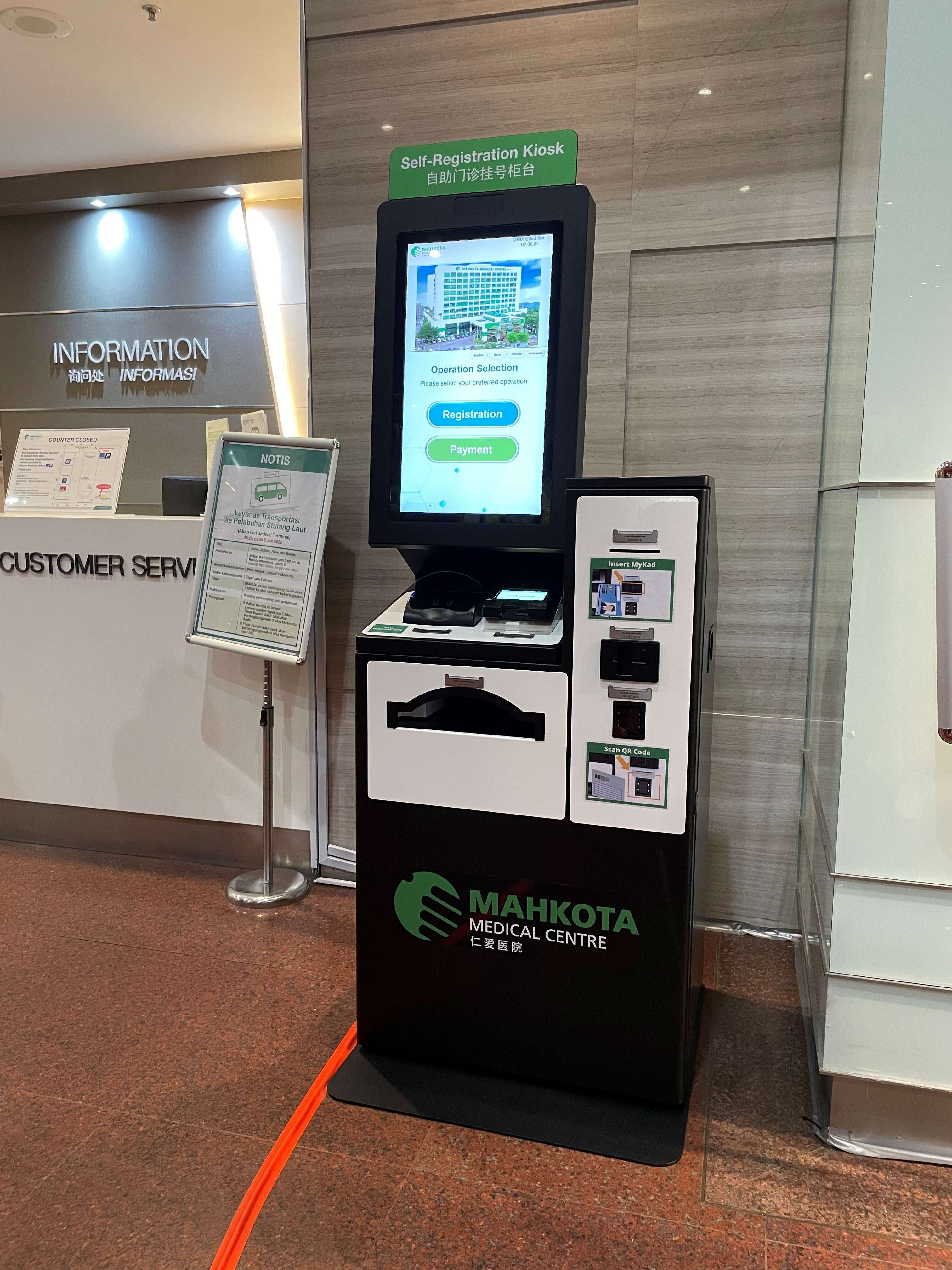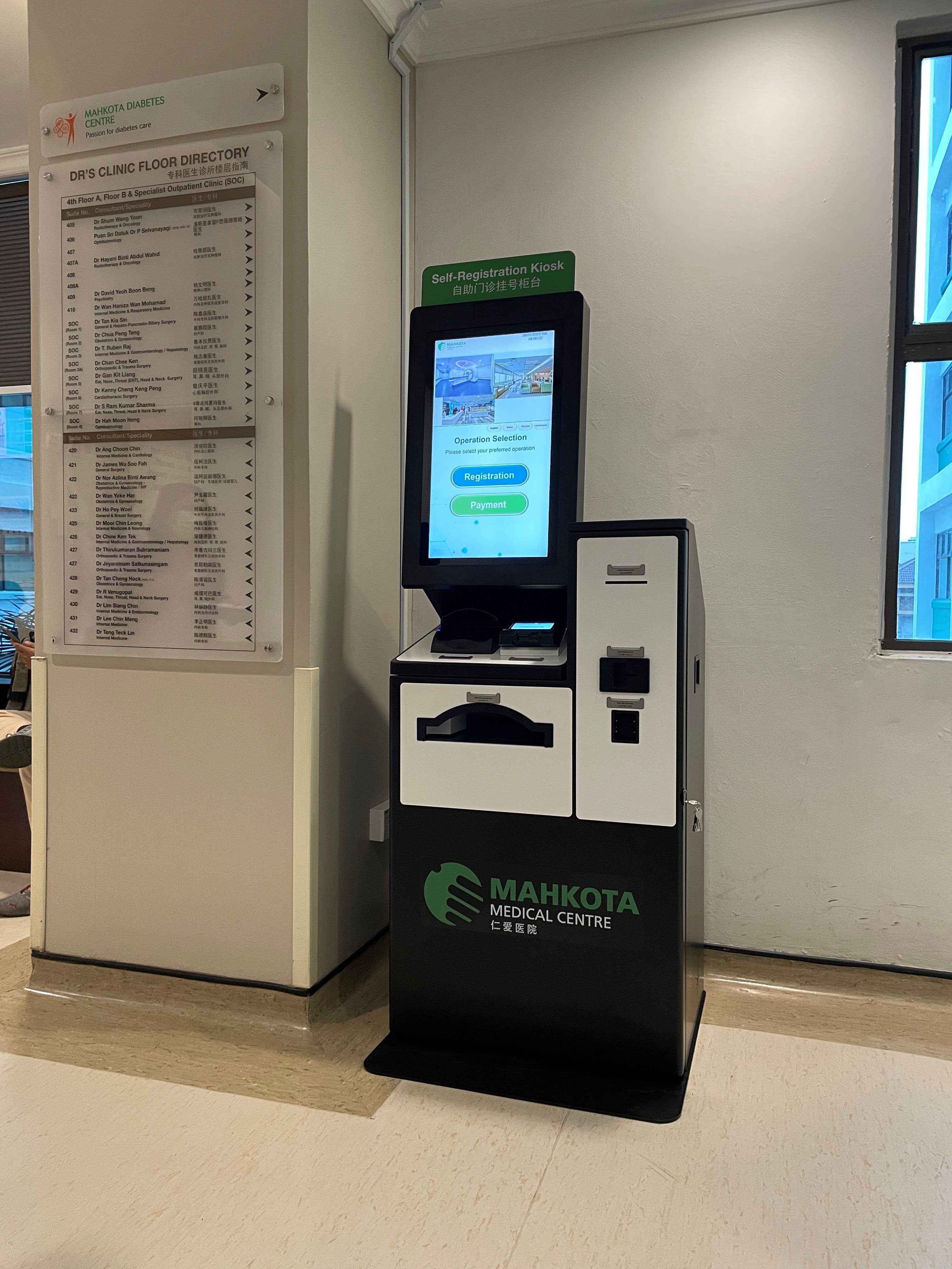 マラッカ中心の大型病院、Mahkota Medical CentreにA4プリンター搭載型自動受付機を導入頂きました!
