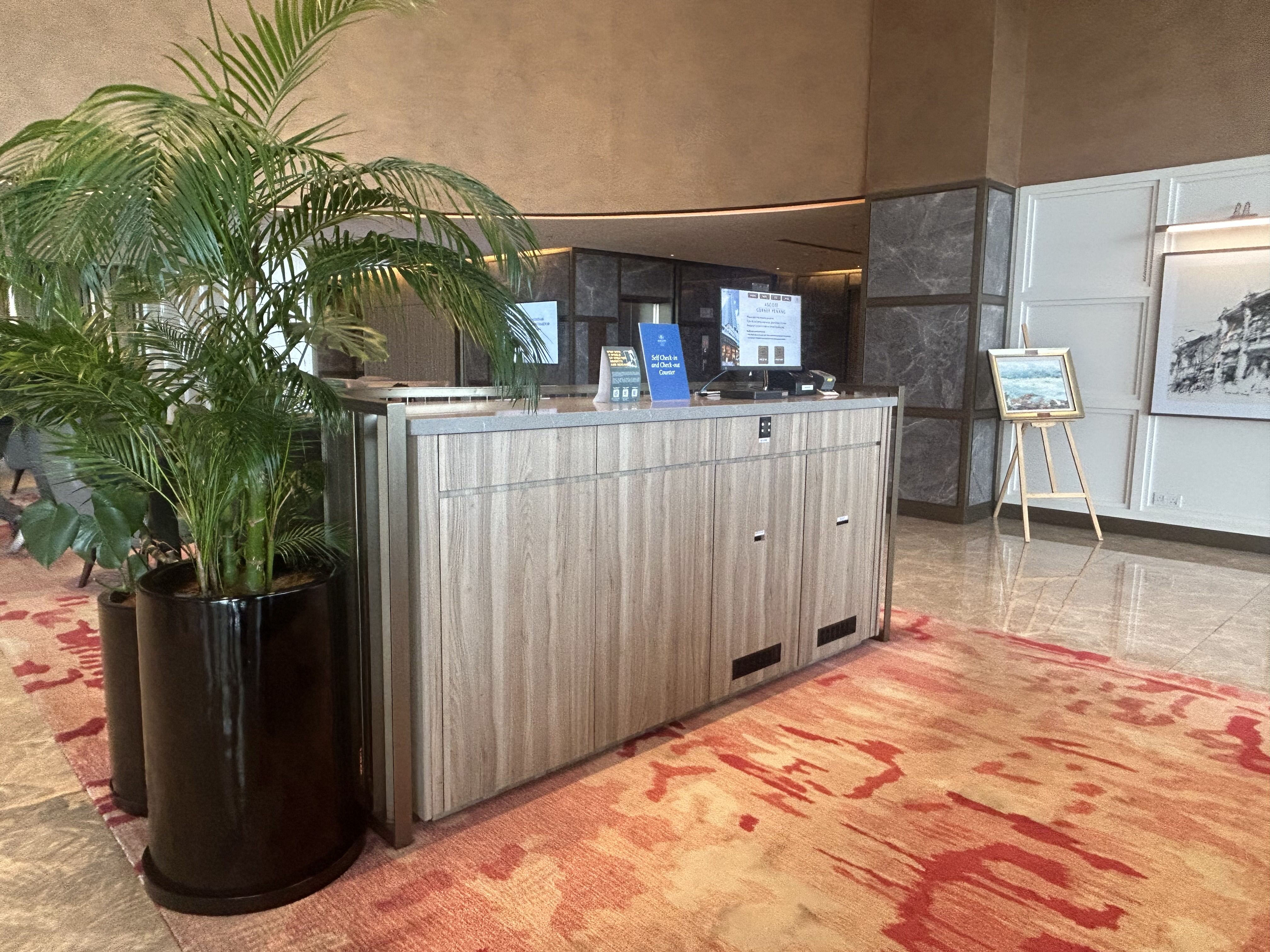 今回セルフチェックインキオスクが導入された家具は今までと違い、既存の家具を一部改造してデバイスの搭載されました。新規で家具を作らなくても既存の家具の一部改造にてセルフチェックインキオスクは導入することができ、より今までのロビーのイメージを崩さずに新しいテクノロジーが空間に馴染んでいることを実感出来ることでしょう。