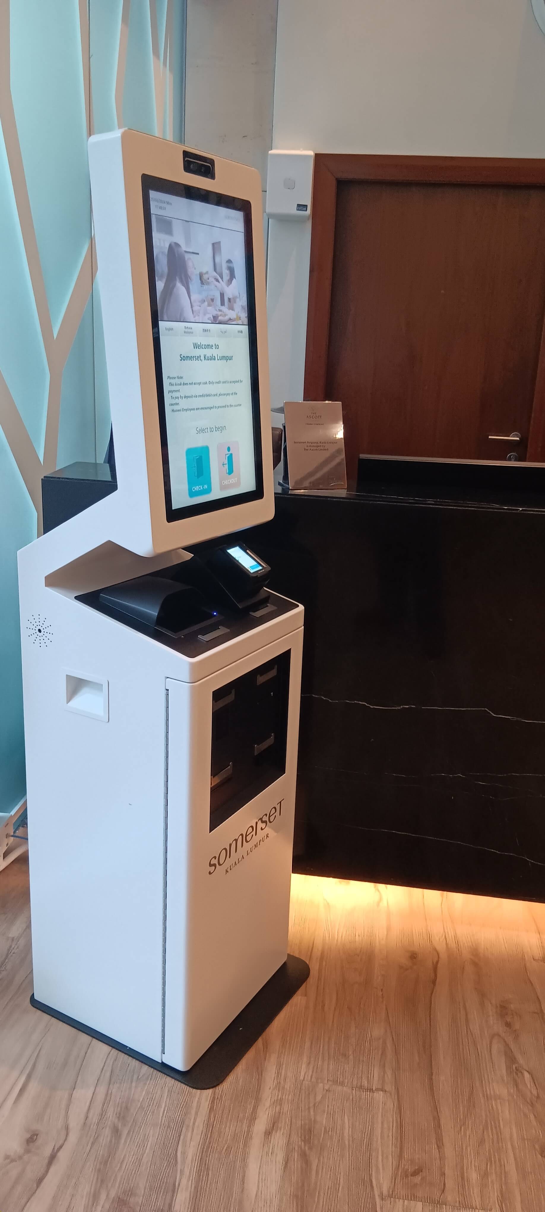The kiosk is equipped with advanced check-in and check-out functions, fully interfaced with the Ascott group's system. It supports five languages and includes a built-in payment function, ensuring a seamless and convenient experience for all guests.